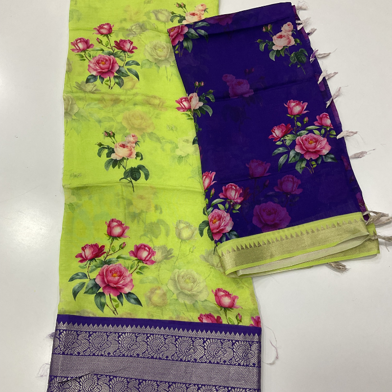 - Mangalagiri Pattu Digital Print Dress Sets – Designer dress materials with vibrant digital prints.